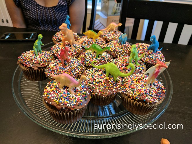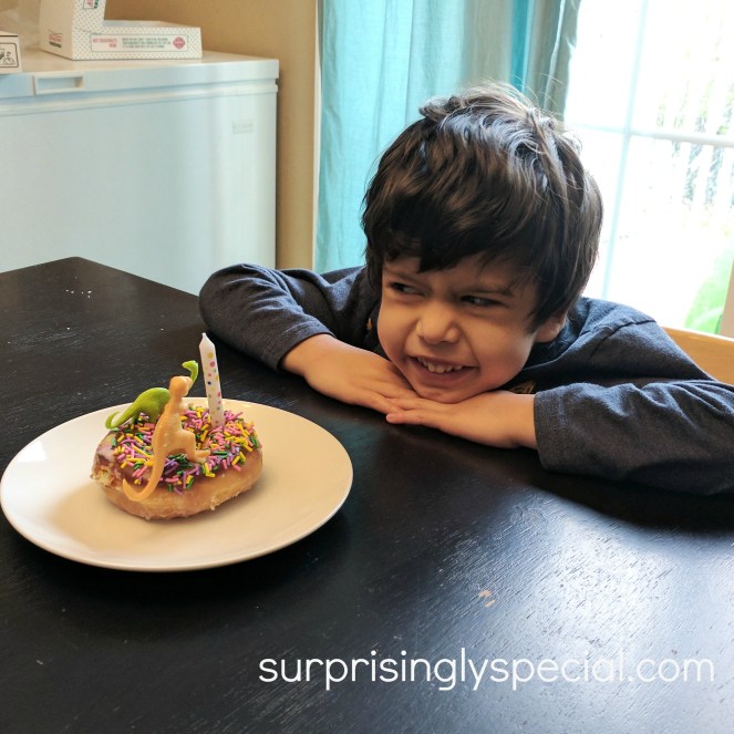 We celebrated his big 5th birthday with a trip to a science museum (like we do). Granny and Danpa came to town and we all went to Marbles Kids Museum in Raleigh – a super fun place with lots of different kinds of play spaces for kids to explore. We had donuts covered in dinosaurs for birthday breakfast and cupcakes covered in dinosaurs after dinner. And the birthday boy opened gifts of board games and trains and dinosaur shirts.